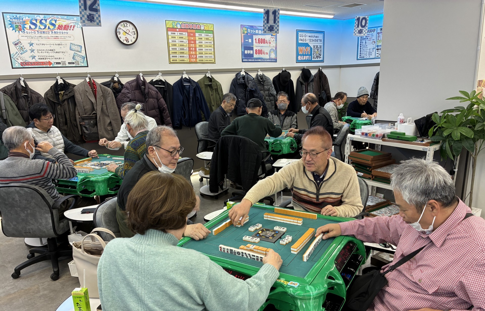 麻雀同好会は年間3回開催しています。会場を地下鉄駅近くの雀荘へ変更し、喫煙ルームも分離された環境となりました。現在会員は二十三名で若手の入会も増え、前回は4卓で楽しく真剣勝負。毎年5月には年間表彰も行っています。認知症予防や交流の場として、ぜひご参加ください。
