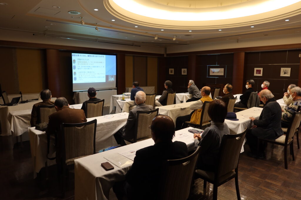 18回目の新年交流会は、昨年と同様「ザロイヤルパ-クホテル広島リバ-サイド」で23日11時00分より開催されました。今回は「新年交流会」と「Web講演会視聴会」の同時開催で実施しました。