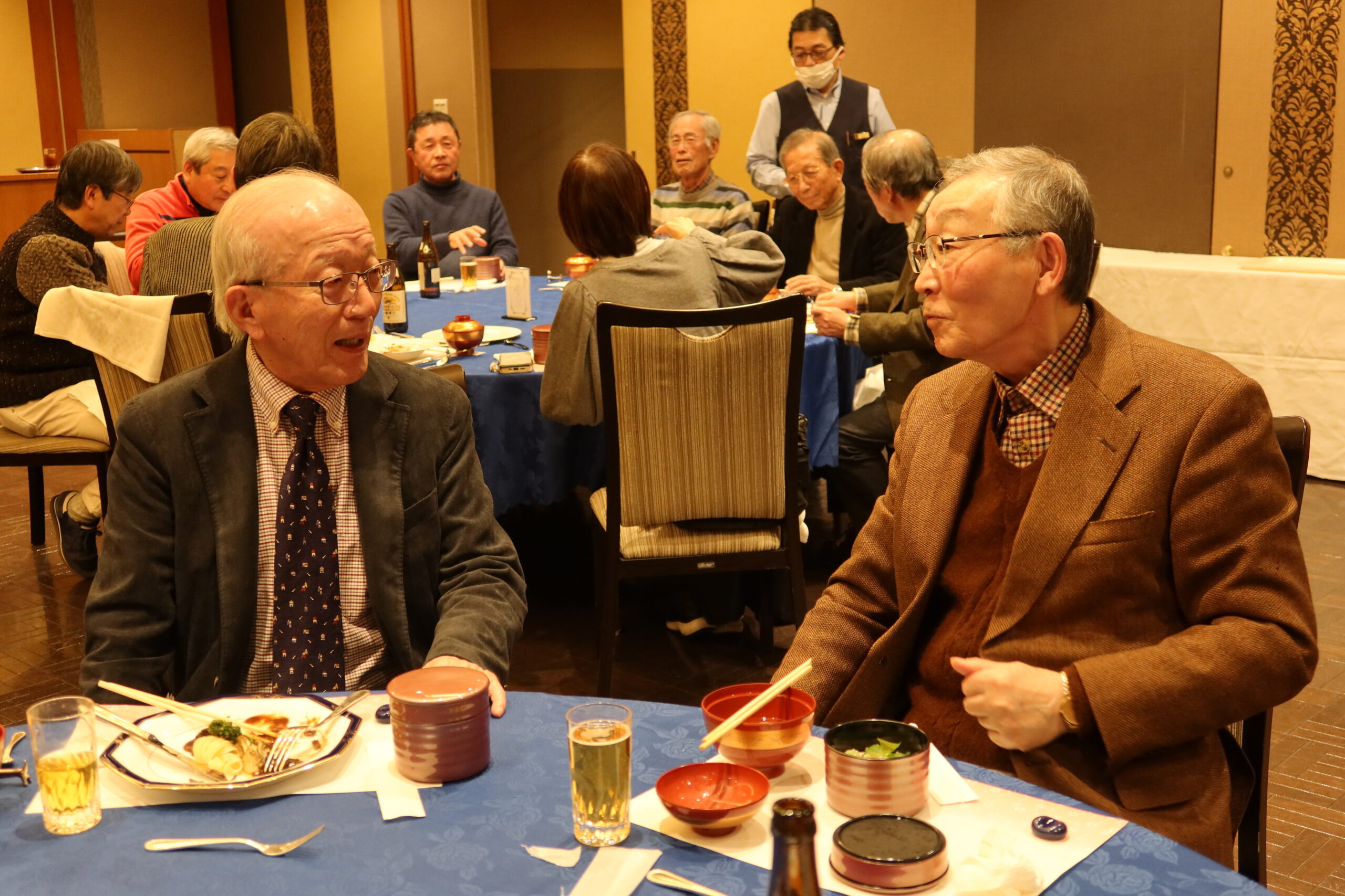 初めに筑瀬支部長から挨拶を頂き、池沢副支部長の乾杯の発声で新年会が始まりました。料理は和洋会席で、飲み放題。皆さんしっかりと楽しんでおられるようでした。