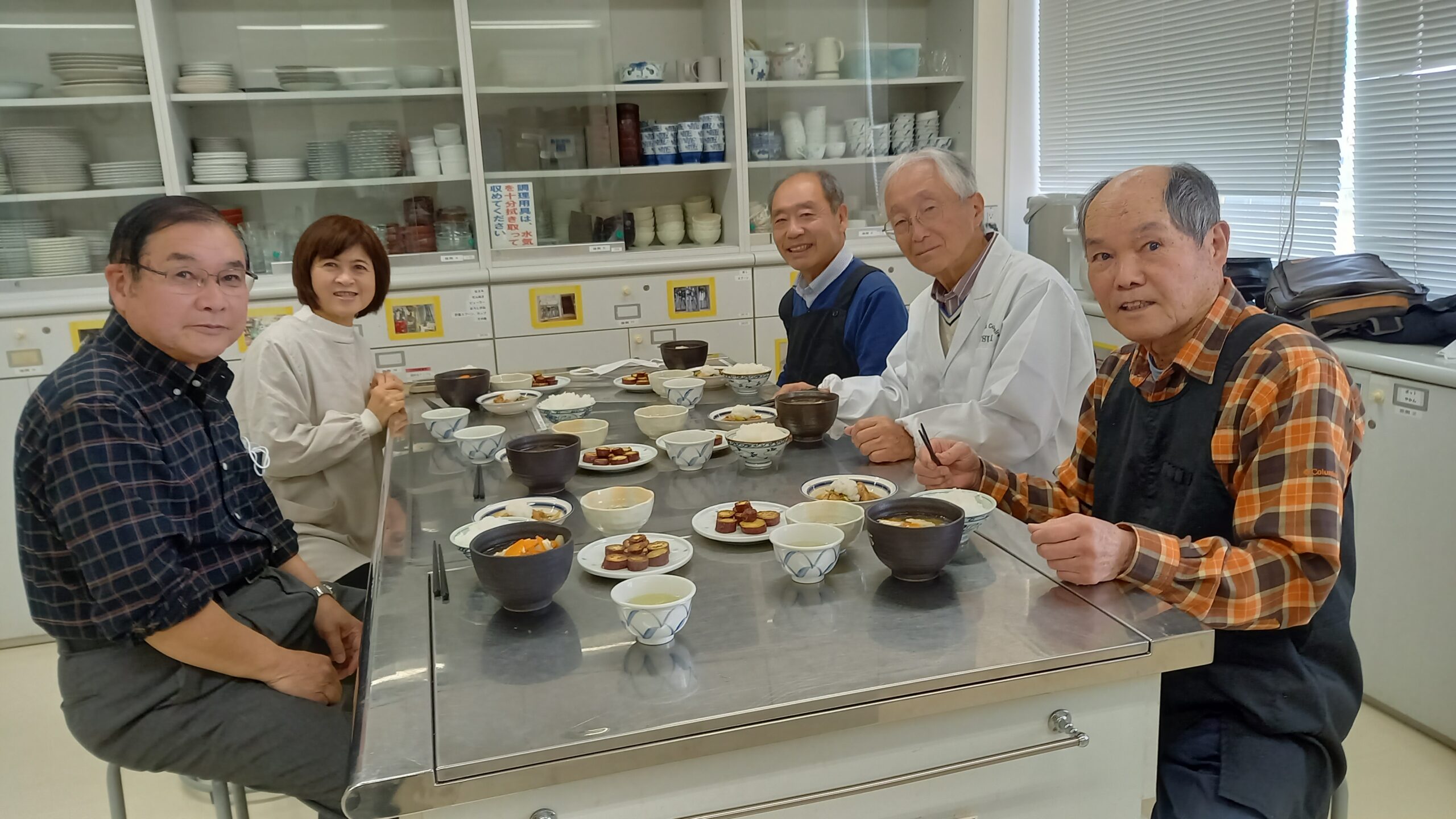令和7年度最後の料理同好会は和気あいあいと進みました。レシピのメインメニューは『あら汁』です。普段はあら煮しか作ったことがない私も興味あり、皆様と手分けして野菜を切り煮込み味噌で味を調える。中々、美味しい仕上がりになりました。