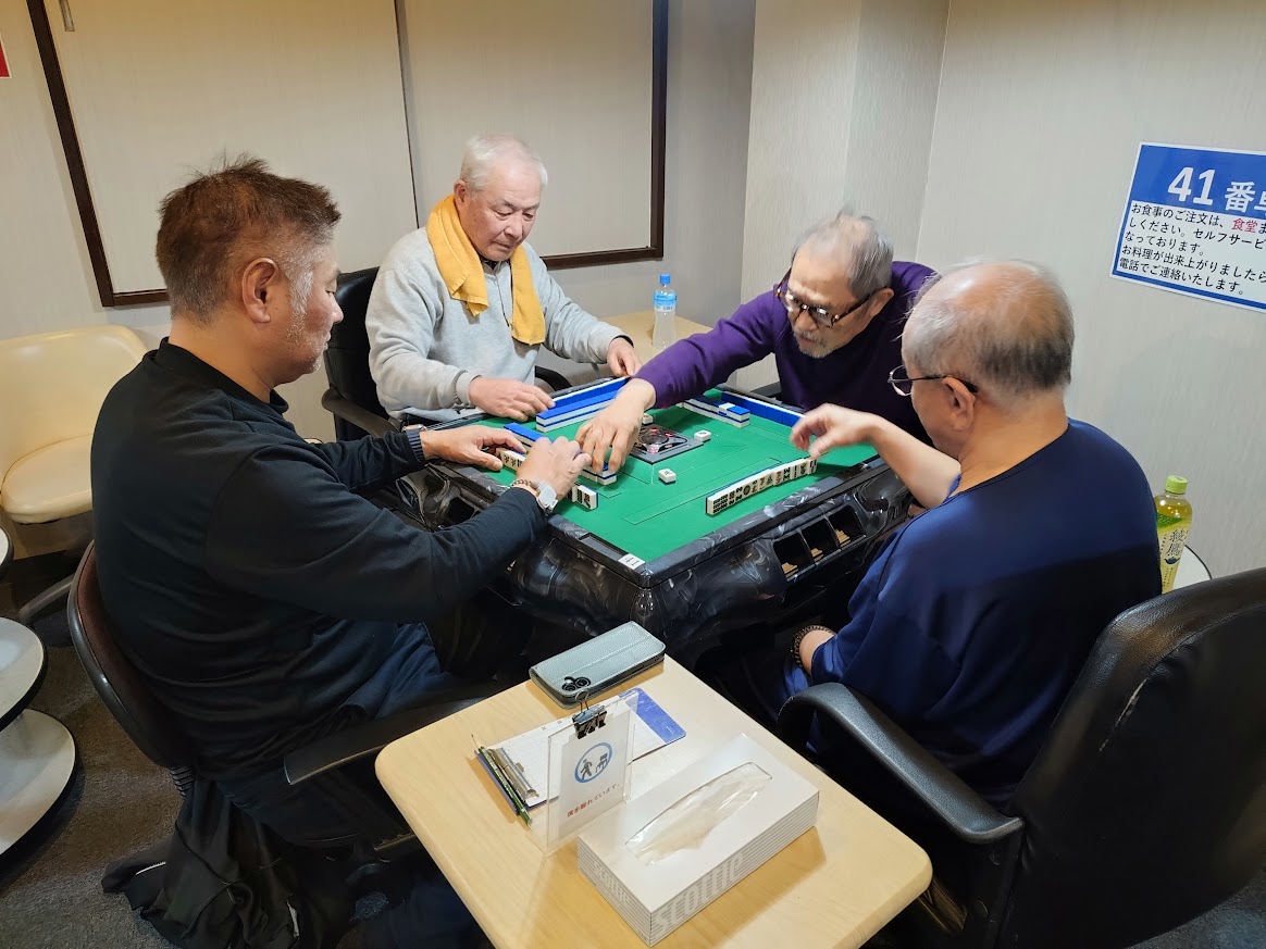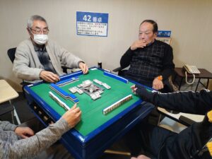 今年度最後のマージャン大会を2月26日に富山市のスパ・アルプスで実施しました。10人参加の予定でしたがインフルエンザにかかった孫のお守りで一人欠席。二抜けでスパに入るルールで4回戦を戦いました。