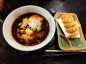 会場のスパ・アルプスは2700円の入場料で1000円の昼食券が付いてきます。私のお昼は富山名物のブラックラーメン。縁起を担いでとんかつメニューを注文される方が多いようですが、勝負にはあまり関係がなかったようです。