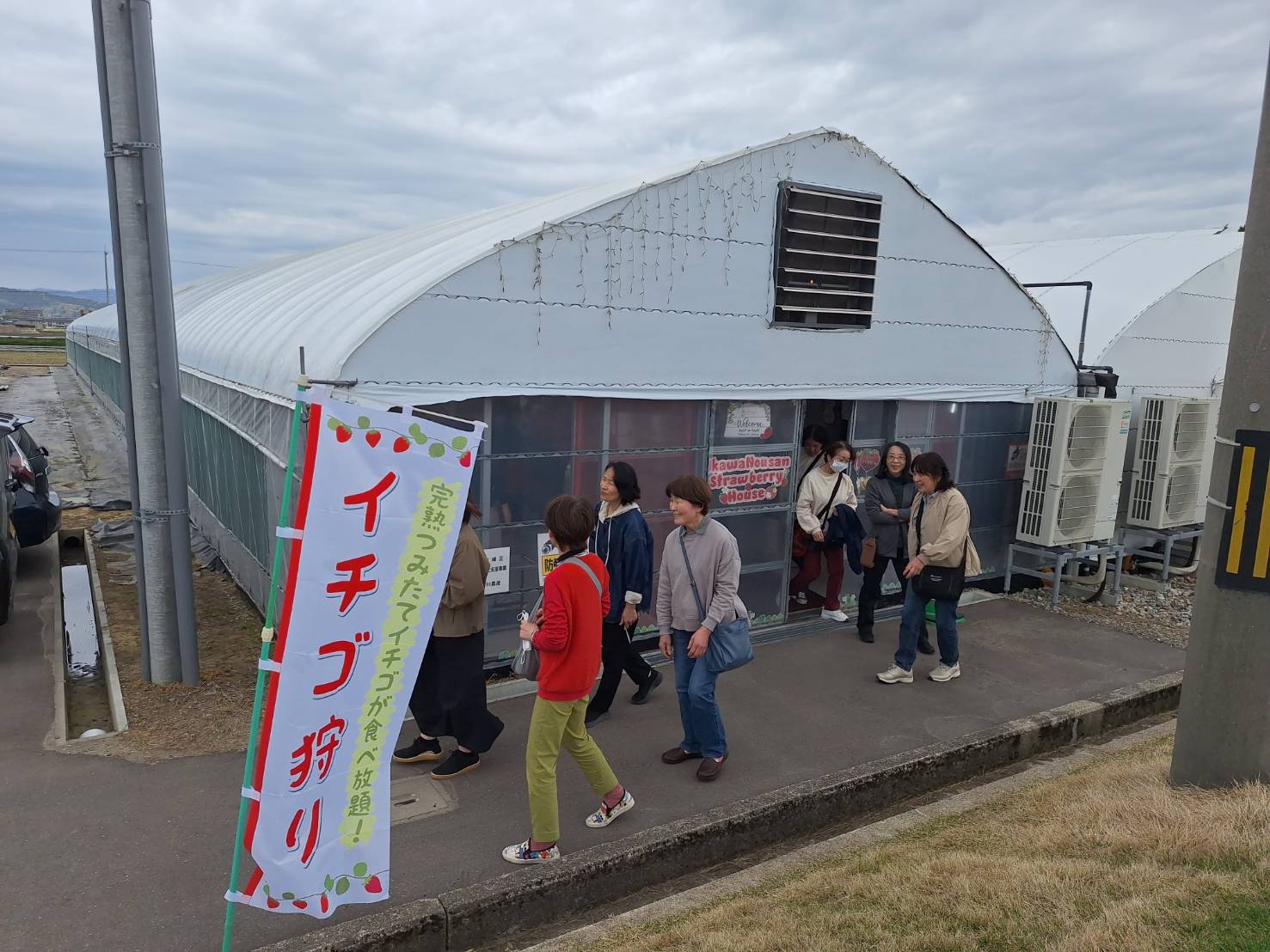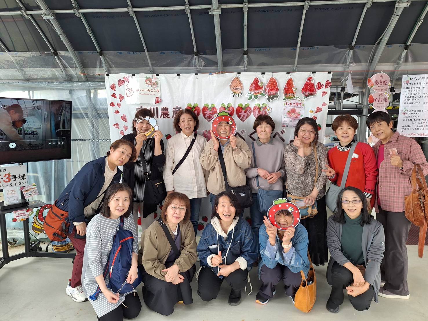 4月18日に富山県小矢部市にある「宇川農産」でイチゴ狩り(食べ放題)及びクロスランドおやべ内の「フィレンツェクラブ」でランチ会を実施しました。参加者は13名、皆、女性です。カルチャークラブは女性会員を増やす取り組みとして、現時点で女性限定のクラブで活動しています。