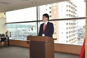 会の冒頭では、社友会本部来賓としてご出席いただきました新保理事様より、祝辞と社友会活動報告及び今年度の活動計画などご報告賜りました。