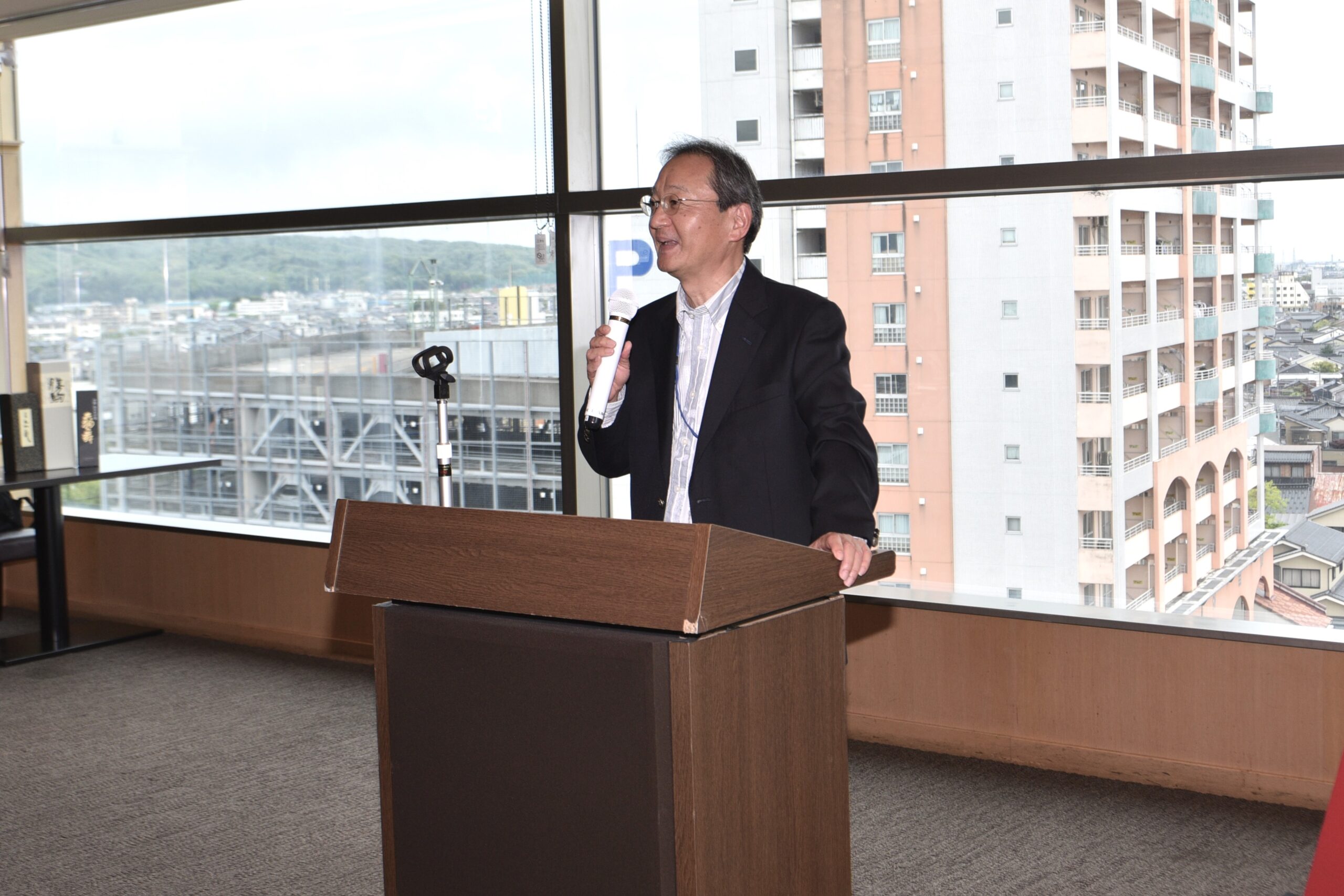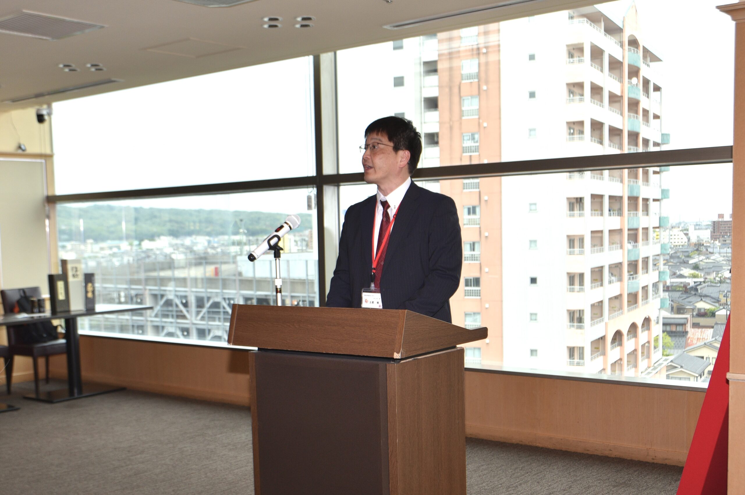 続いて、アステラス製薬富山技術センター長の土肥様よりご挨拶と会社の近況概況などを分かりやすく参加者にご説明頂きました。また、高岡工場が今年度閉鎖となり、高岡工場出身者が北陸支部に多数在籍することもあって、改めての労いのコメントを賜りました。支部総会という場において参加者全員が社友会活動やアステラス製薬の近況を知ることができ、大変良い機会となりましたこと感謝申し上げます。