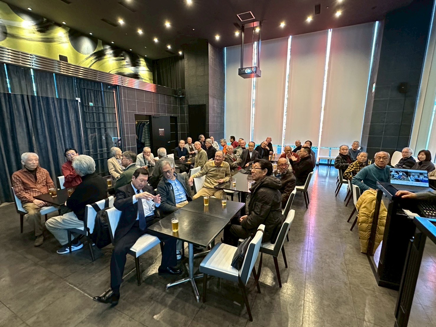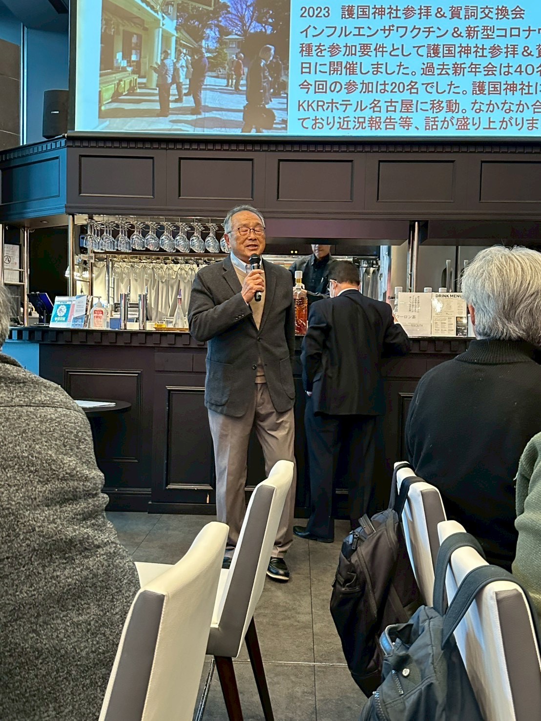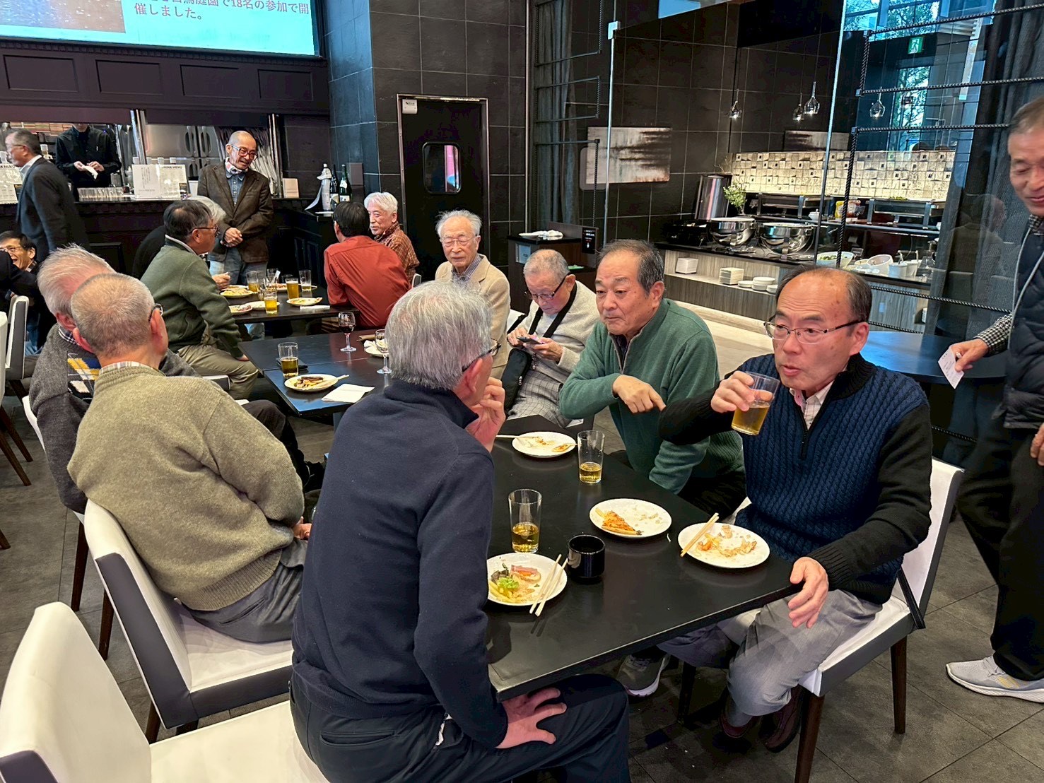 また会場内の大きなスクリーンに、名古屋支部8同好会の活動10年の写真(約350枚)をPPTで映像に流し、食事、歓談しながら若き日、懐かしい会員の思い出を振り返る時間を共有しました。