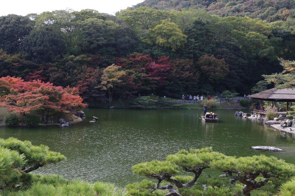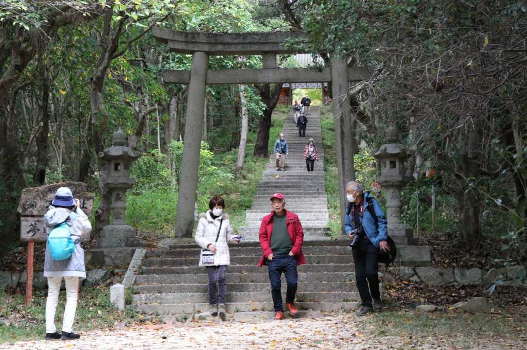 二日目は紅葉の名所として知られる五色台の四国八十八ヶ所霊場・第81番と82番札所の白峰寺(しろみねじ)と根香寺(ねごろじ)にお参りしました。白峰寺では干支の守り本尊が各堂に祀られていました。また、根香寺では仁王門近くにかつて人を食べたという牛鬼の巨像があり圧倒されました。その後、栗林公園に移動し日本庭園を撮影しました。園内の「花園亭」でいただいた名物のたらいうどんと栗ご飯は美味でした。午後は屋島展望台で瀬戸内海と島々が織りなす景色をカメラにおさめました。予定通り18時頃大阪に帰着し無事解散となりました。神社仏閣や城、展望台と思いのほか登り下りが多かった分、食事とお酒が美味しかったに違いありません。両日とも天候に恵まれ、見頃を迎えた紅葉と、どこを切り取っても絵になる瀬戸内の雄大な景色にシャッターボタンを押した回数は数知れず、撮影した写真の出来栄えが楽しみです。