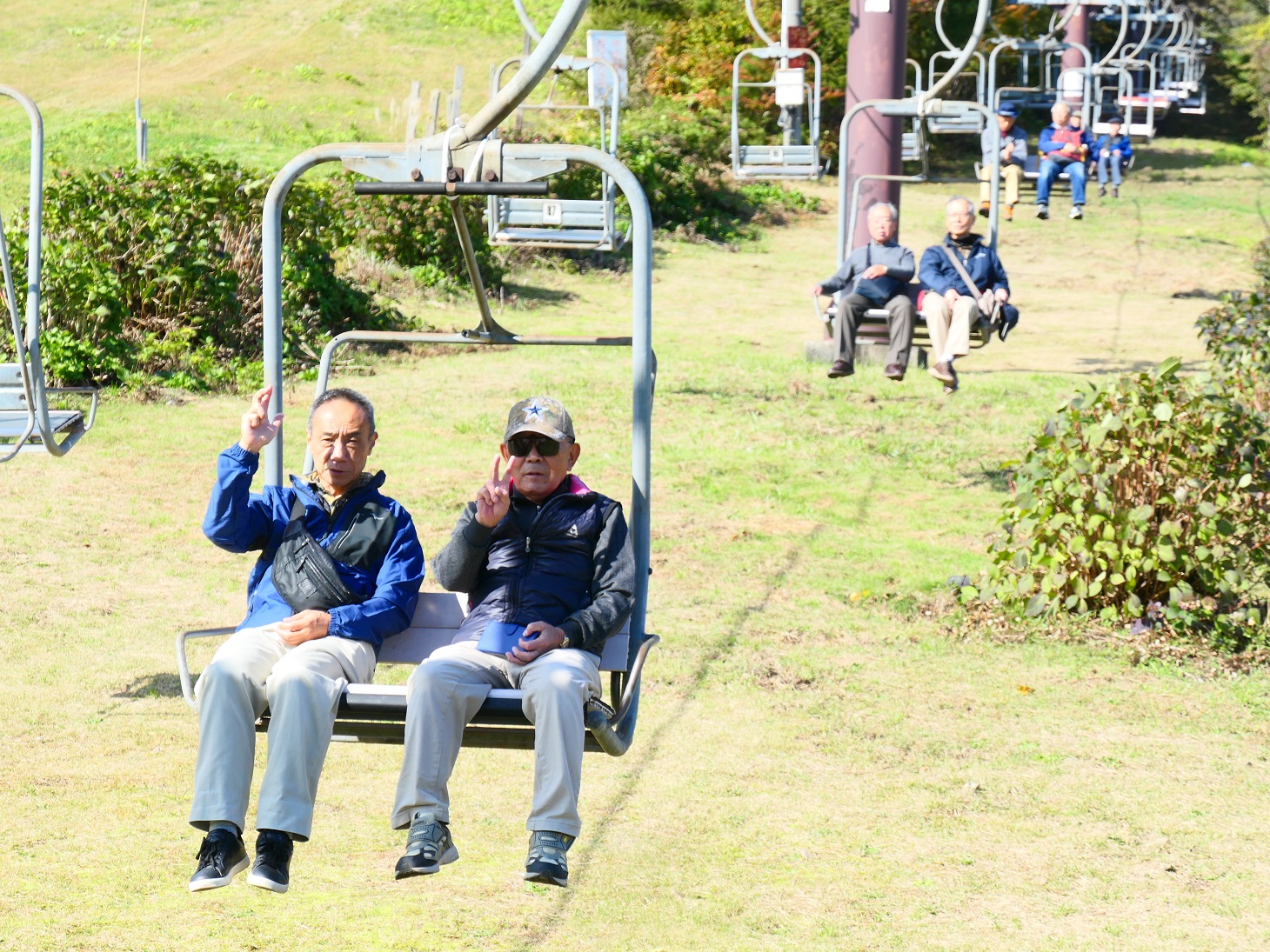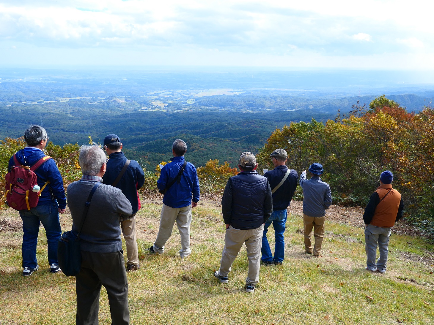 泉ヶ岳ではリフトに乗り、兎平の山頂駅に上がりました。山頂からは遠く仙台市内と太平洋を撮影し、クマの出そうな白樺林に行って紅葉を撮影しました。スキー場からの景色を堪能しリフトからの景色を楽しみ『仙台御名物いも煮会場』へ移動。