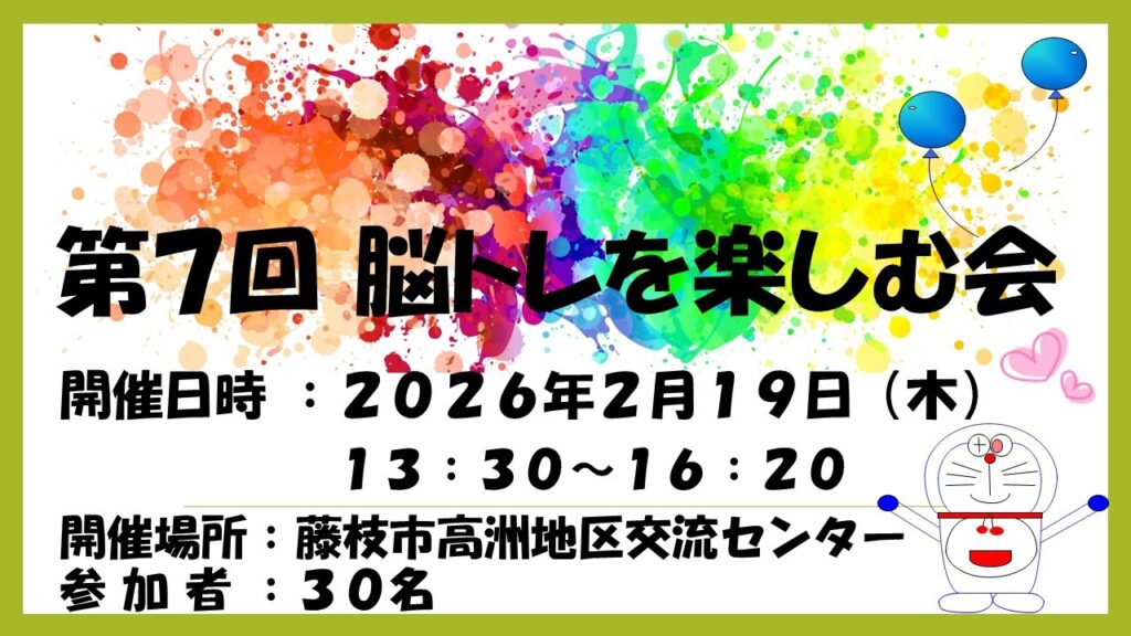 今年度、3回目の「脳トレを楽しむ会」は、参加者30名で開催しました。無事に終了しましたので、ご報告いたします。