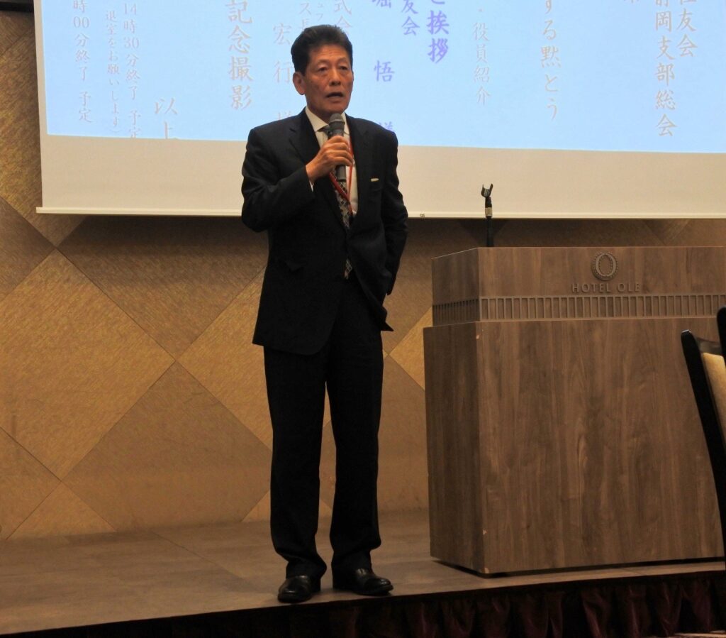 | 冒頭の物故会員に対する黙とうに続き、久能支部長より来賓の方々への謝辞とアステラス製薬よりのお祝い金のお礼に続き、静岡支部の今年度の幹事・世話人の紹介、活動方針の説明並びに支部20年を支部総会で振り返る紹介が有りました。