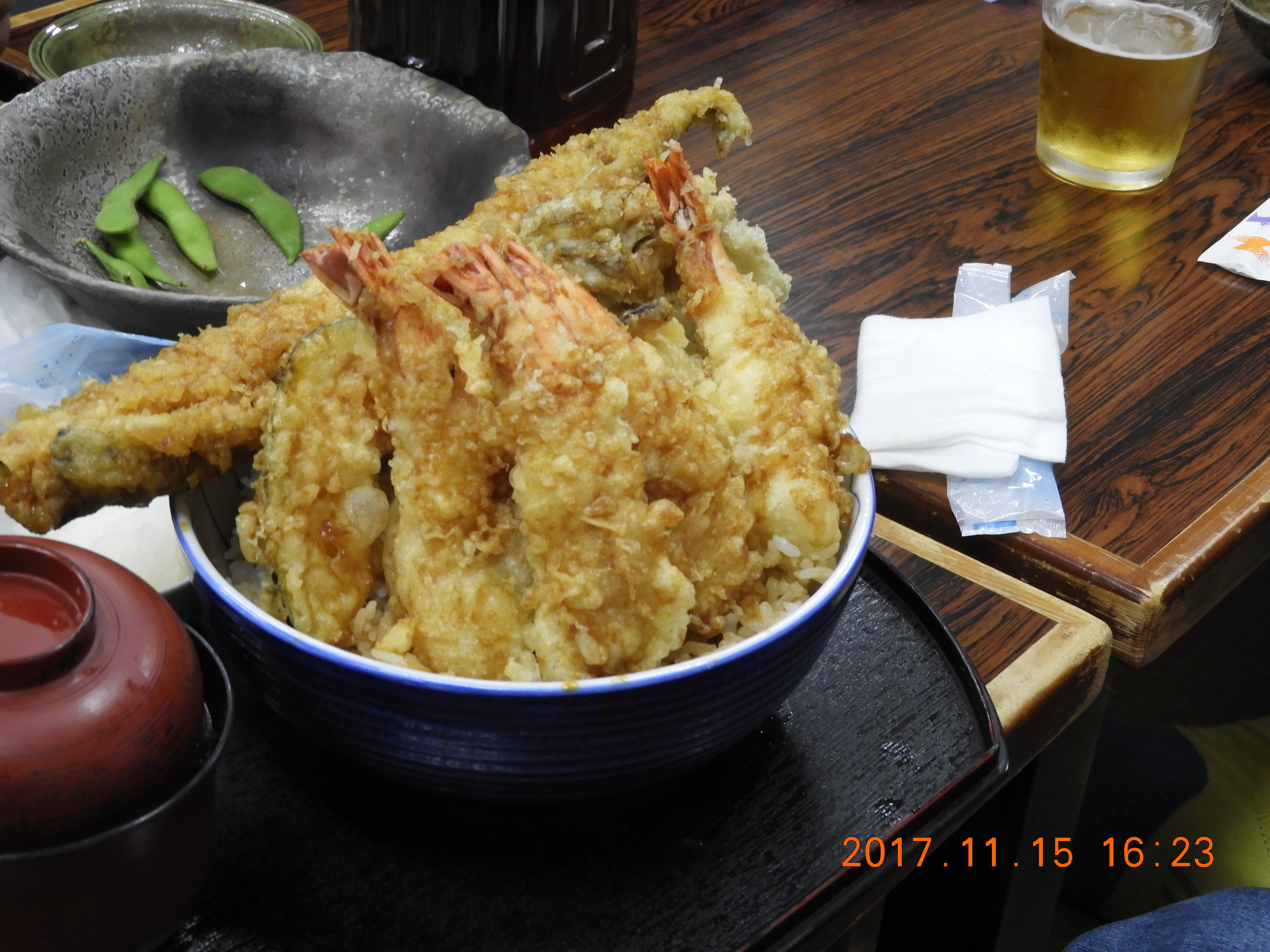 超大盛アナゴ天丼 ワインで食べましたが完食ならず