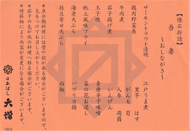 尚、日本橋大増の懐石折詰弁当「吾妻」は、惣菜も彩り豊かで、皆さん、満足できたのではないでしょうか。