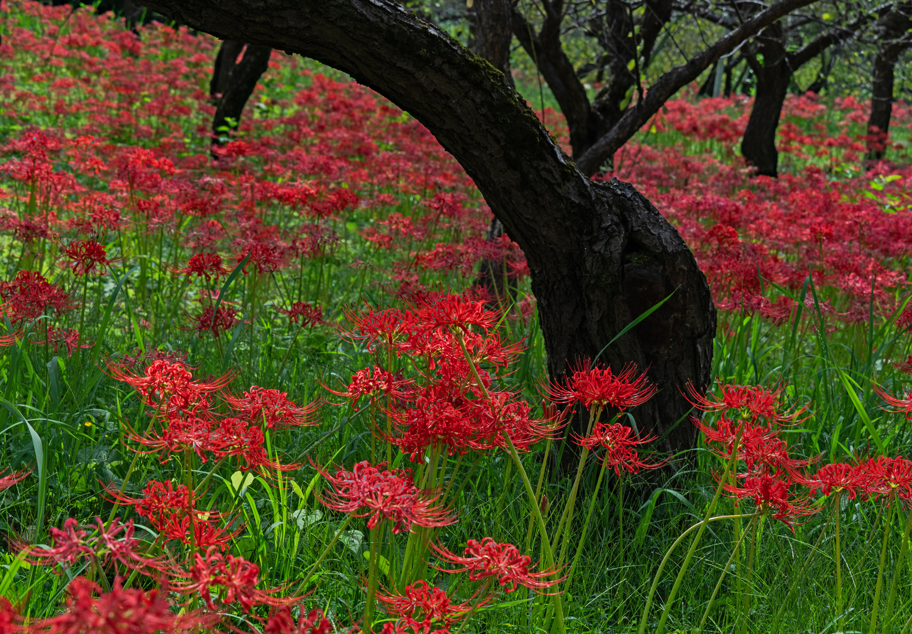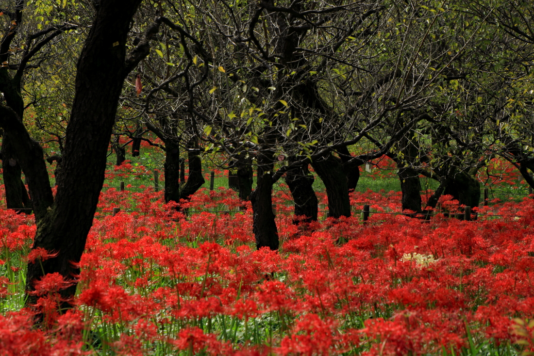 前回は梅の花の撮影会を行ったのですが、今回は梅の木の下などに彼岸花が40万本も咲いている