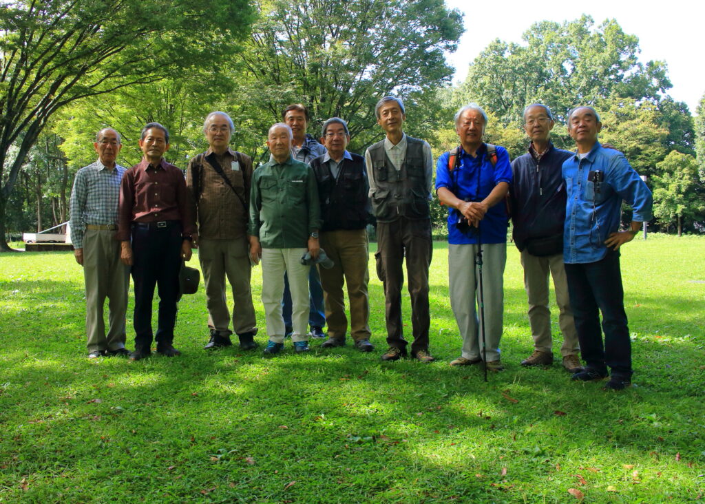 今回の参加者は10名でした。入り口の広場付近で恒例の集合写真を撮り13時に園内の昼食場所