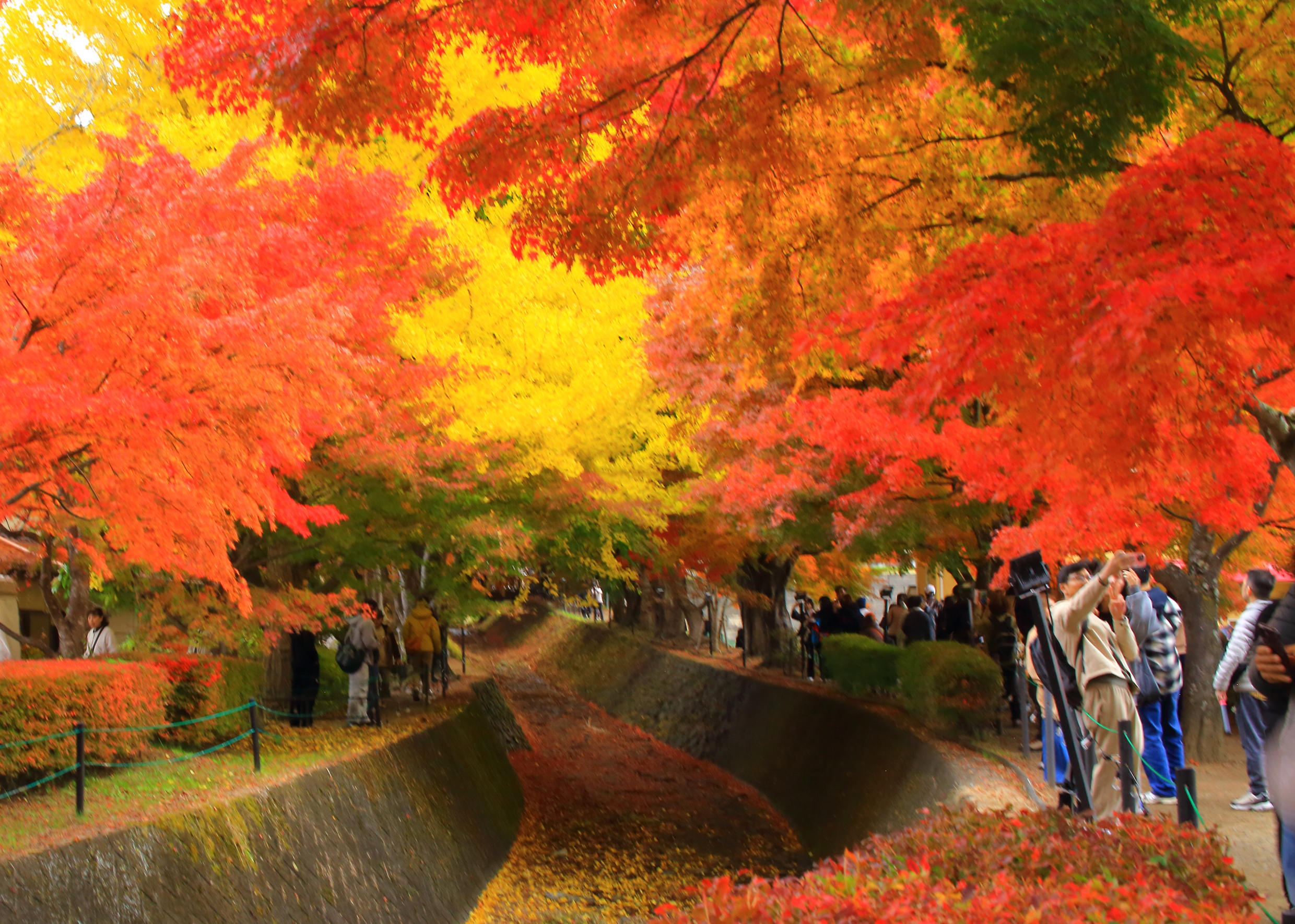 撮影時間を約2時間と決め、各自で自由撮影としました。数百メートルも続く紅葉は真っ盛りで