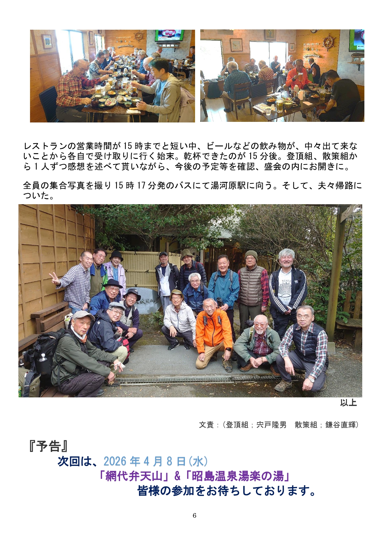2026/4/1 山と温泉同好会更新