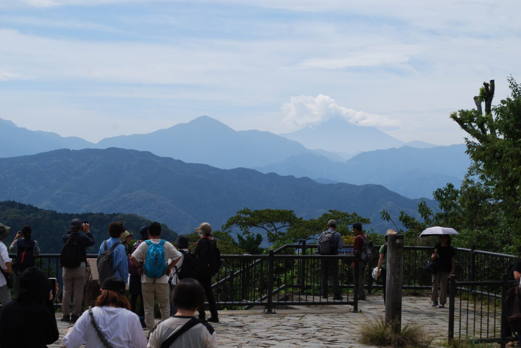《登頂の甲斐あって、少し曇に隠れて富士山が見えました。》