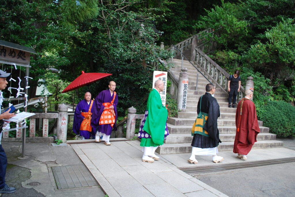 《下山後に、薬王院本堂への僧侶の参列に遭遇しました。》