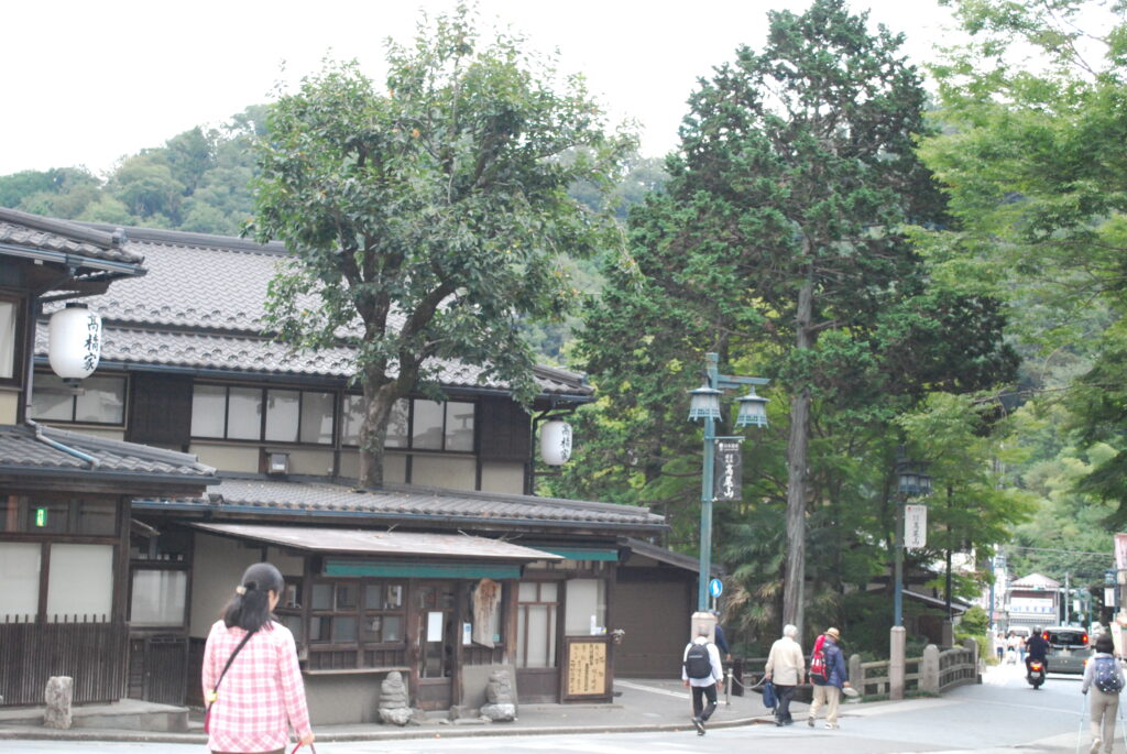 《高尾山高橋蕎麦家の屋根を突き抜けた樹齢150年の柿木》