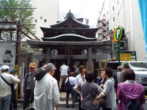 スタートはアステラス製薬本社屋の目の前の福徳神社から<小網神社>→<茶の木神社>→